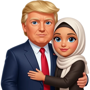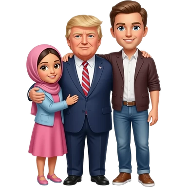 A sister in hijab hugging a father President Donald Trump and his Talller than him son emoji