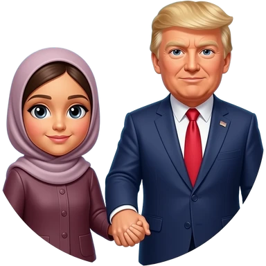 A sister in hijab holding hand in trust a father President Donald Trump and his Talller son Barron Trump emoji