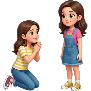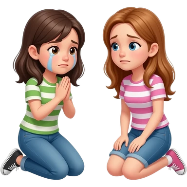 a girl kneeling on knees saying sorry to another girl emoji