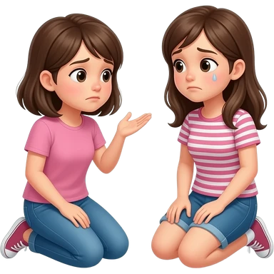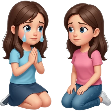 a girl teared eyes kneeling on knees saying sorry to another girl emoji