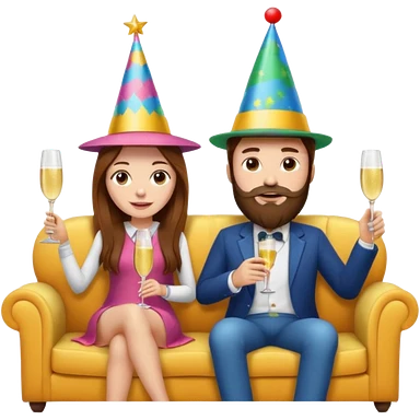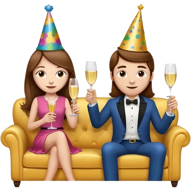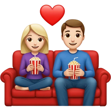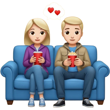 A couple sitting on a sofa in a room enjoying a movie emoji