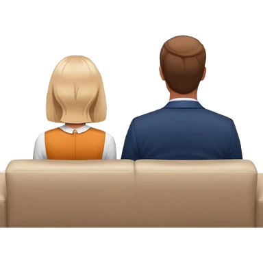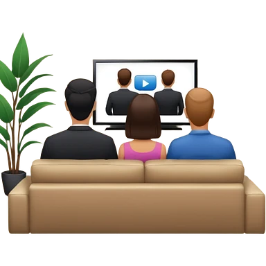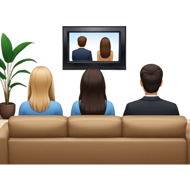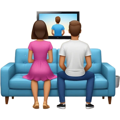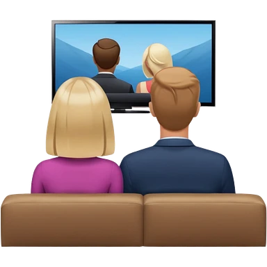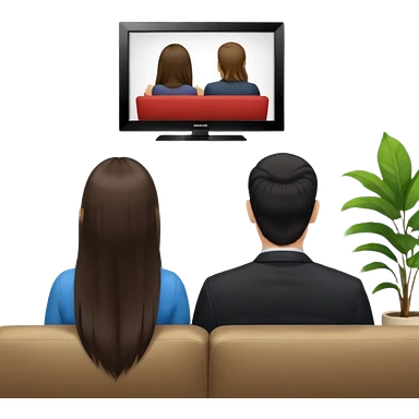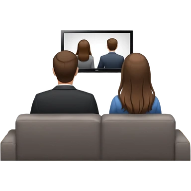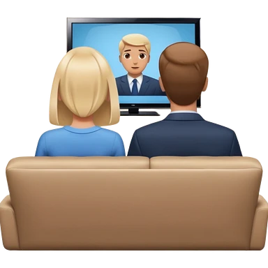 A man and a women photographed from behind, sitting on a sofa and watching the news on TV on a modern flat screen. The setting is a living room. emoji