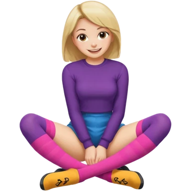 Cute girl thigh high socks sitting legs out, colorful clothes emoji