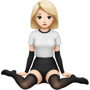 Cute girl, black thigh high sock, sitting, legs out, sexy, white shirt emoji