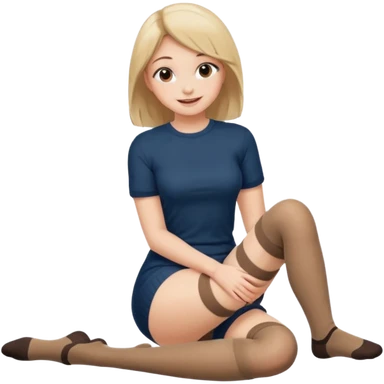 Cute girl, black thigh high sock, sitting, legs out, sexy emoji