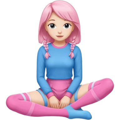 Cute girl thigh high socks sitting legs out pink and blue clothes emoji