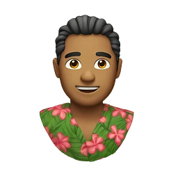 Girl with brown eyes, dark skin, and long black curly hair wearing light pink emoji