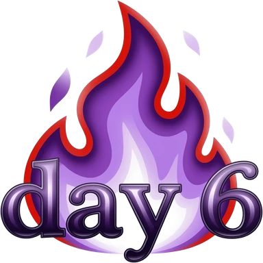 Puedes crear un emoji de un fuego morado como el de la racha de tik Tok pero que se vea demasiado exagerado que los bordes también sean rojos y que diga día 6 en letras diabólicas emoji