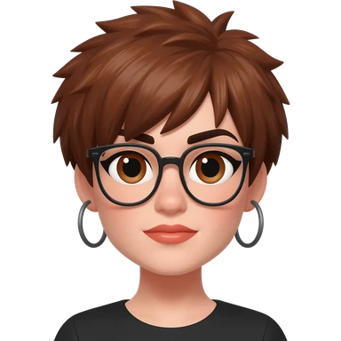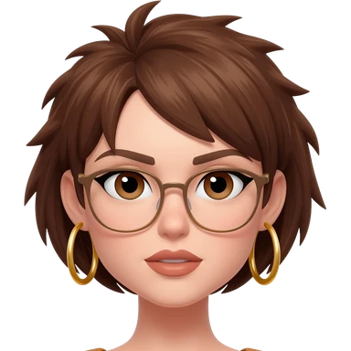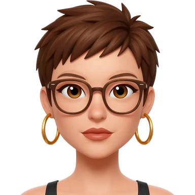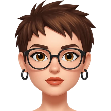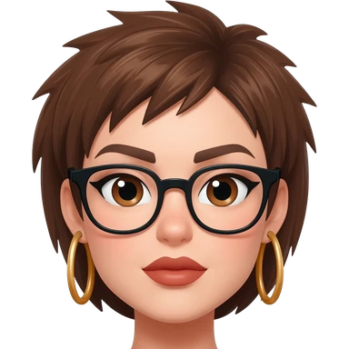 Female very very short brown hair few spikes brown eyes hoop earrings glasses full lips emoji