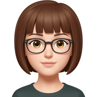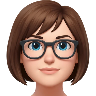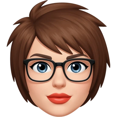 Female veery short brown hair almond eyes glasses emoji