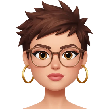 Female very very short brown hair few spikes gold hoop earringsbrown eyes hoop earrings hoop earrings glasses full lips emoji