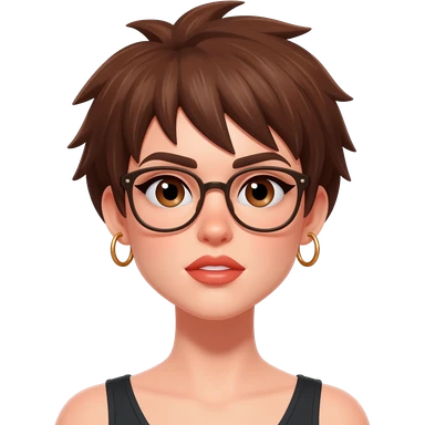 Female very very short brown hair few spikes gold hoop earrings brown eyes glasses full lips emoji