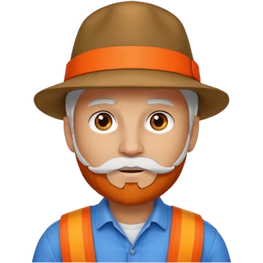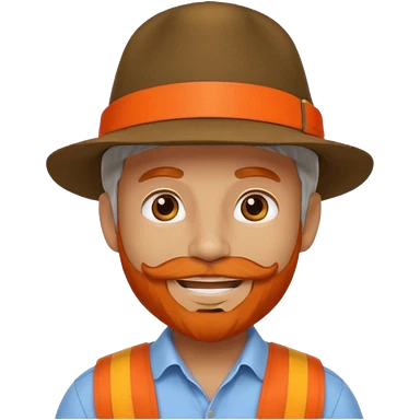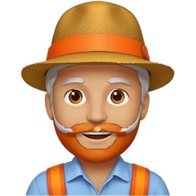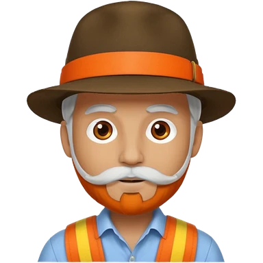 change the hat band with orange band and a red belt. change the facial hair to white. emoji