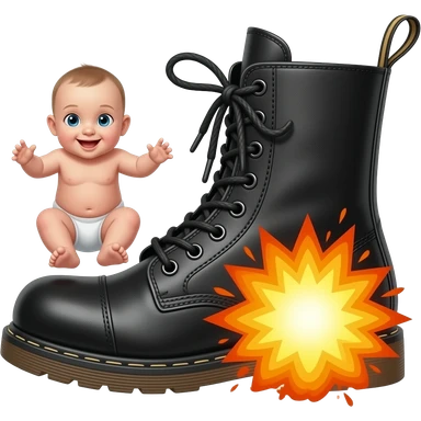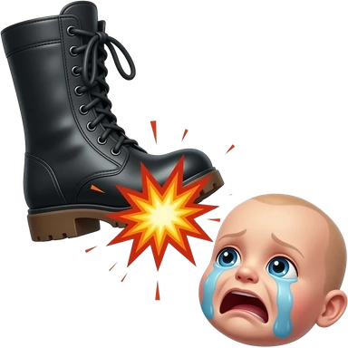 Black boot launching a baby in the air and explosion at toe of boot emoji