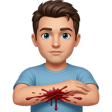 Crying baby with red paint running down face from top being kicked with a black boot with red explosion where the boot touches the kid emoji
