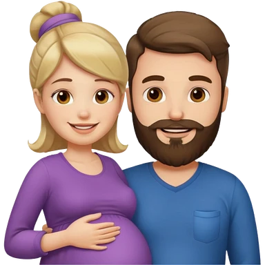 Una mujer embarazada y un hombre con barba emoji