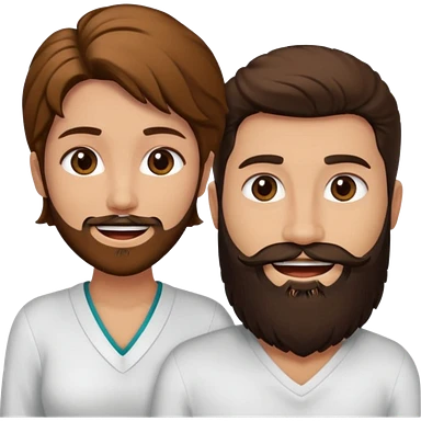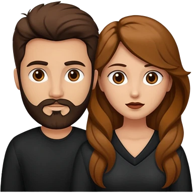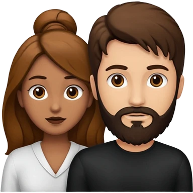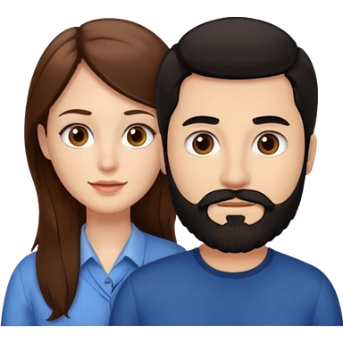 Una mujer con pelo castaño y ojos marrones y un hombre con pelo negro y barba emoji