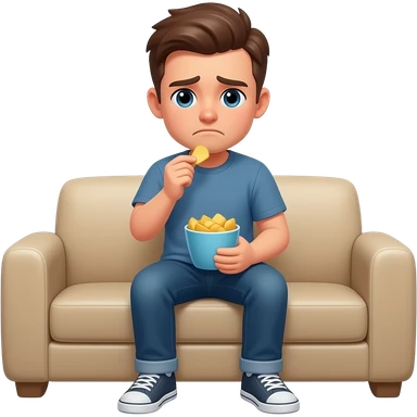 auf dem sofa sitzen und chips essen mit traurigem blick emoji