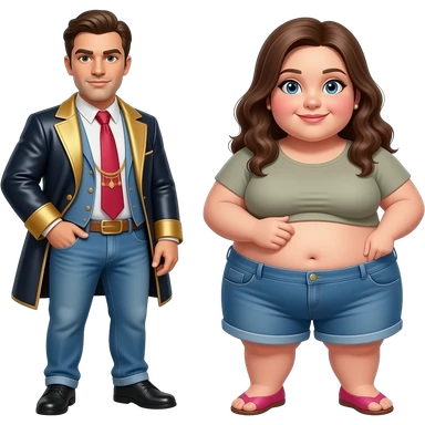 Light complex man wearing a pimp outfit standing with a fat girl emoji