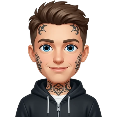 Face tattoos dark brown hair no neck tattoos wearing a black hoodie smoking a cigar emoji