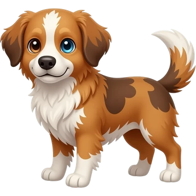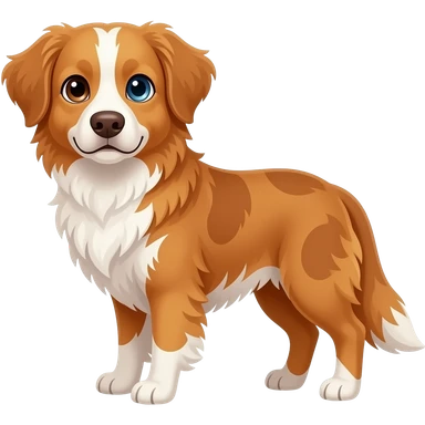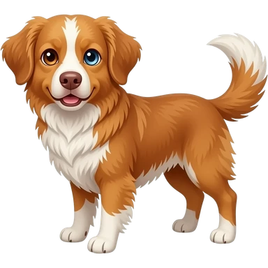 A nova scotia duck tolling retriever with one brown eye and one light blue eye. emoji