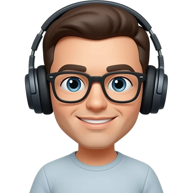 chico joven con corte de moda sudadera negra lentes conpletamente negros y audifonos emoji