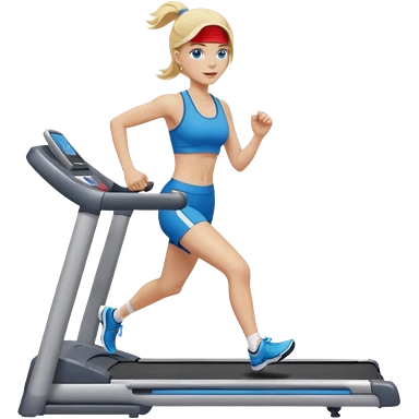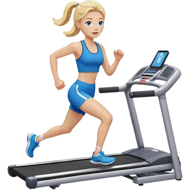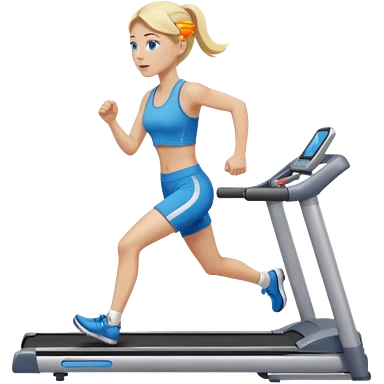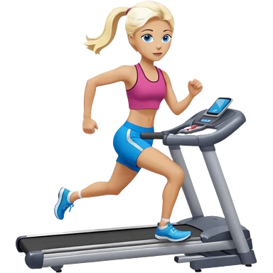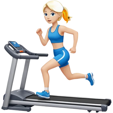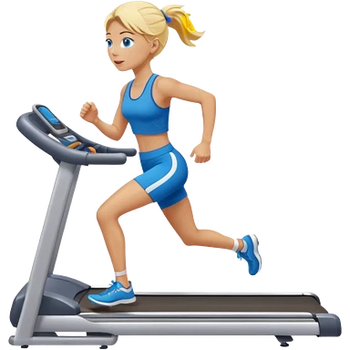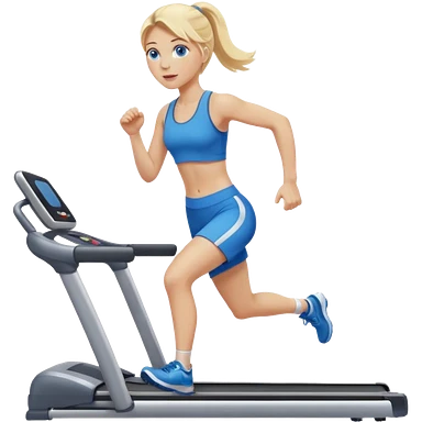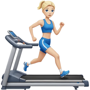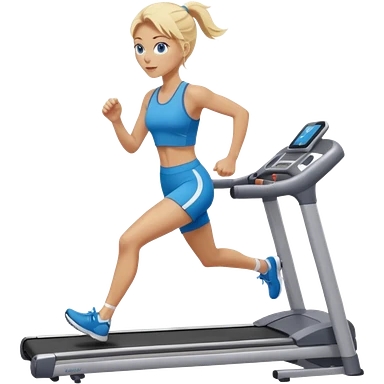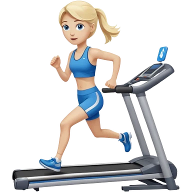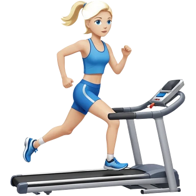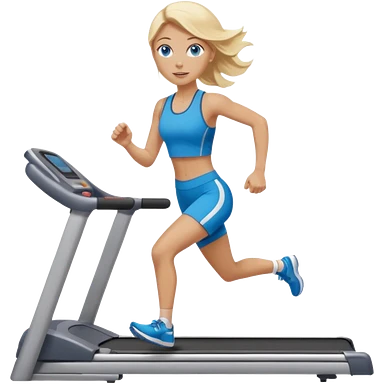 Une femme blonde yeux bleus qui cours sur un tapis de course emoji