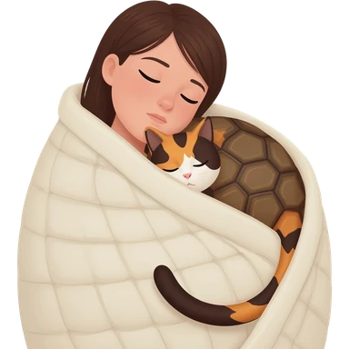 Burnette schläft mit Schildpatt Katze emoji