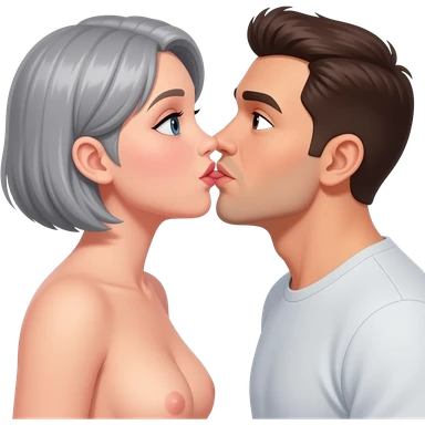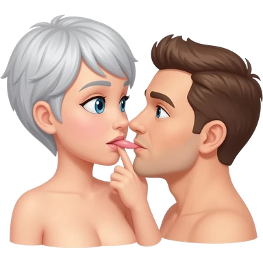 Nude woman full body with short grey hairs sucking blond man sex emoji