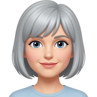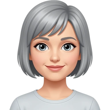 woman 50 years old, short grey fluffy cut hair, white skin and brown eyes emoji