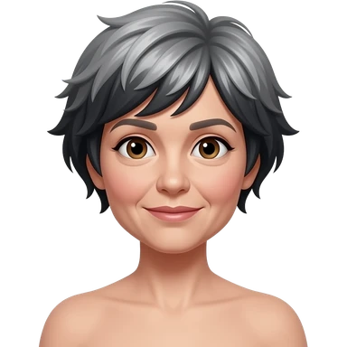 Nude woman with nude body and short black and grey hairs emoji