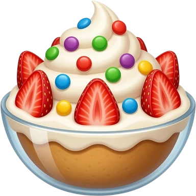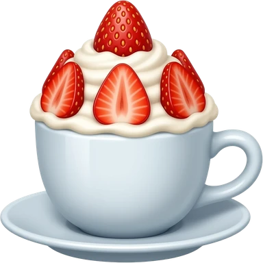 cream with strawberry in a cup with chocolate syrup topping emoji