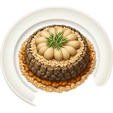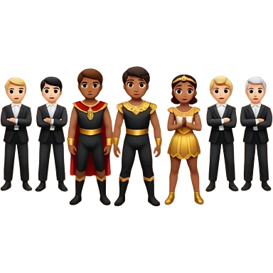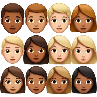 A simple, flat-style illustration of a small group of people with spears and baskets, gathering berries and hunting a deer, surrounded by trees and a sunset—emoji aesthetic, warm earth tones. emoji