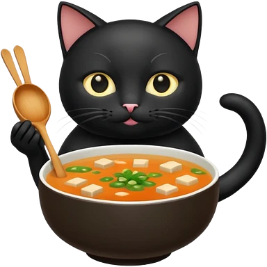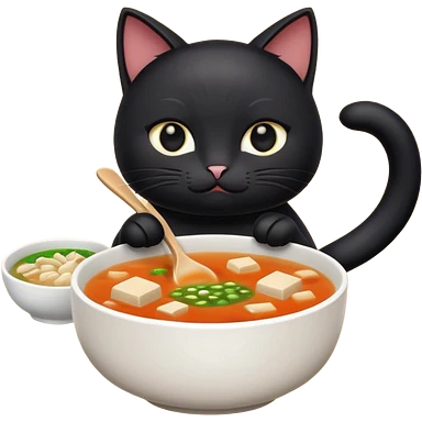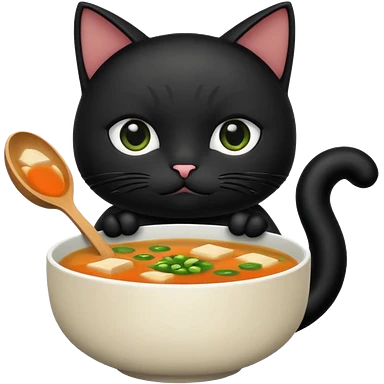 Black cat holding miso soup emoji
