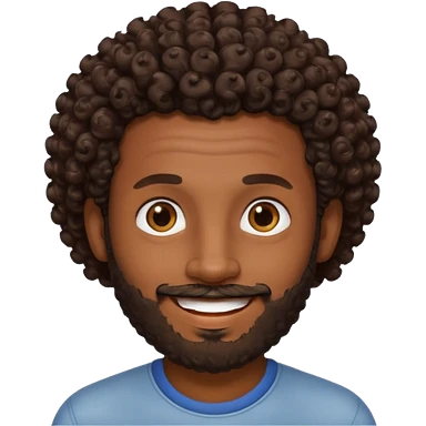 Dark brown skin man with a light beard and a curly fade haircut with dark brown eyes emoji