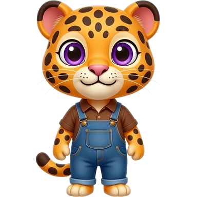 A orange leopard wearing jeans and a brown shirt with purple eyes ( make it cute ) emoji