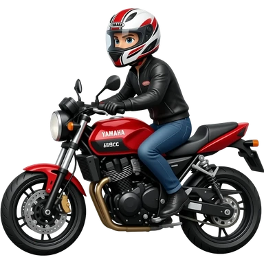 Yamaha 690cc red black & white with man in helmet riding emoji