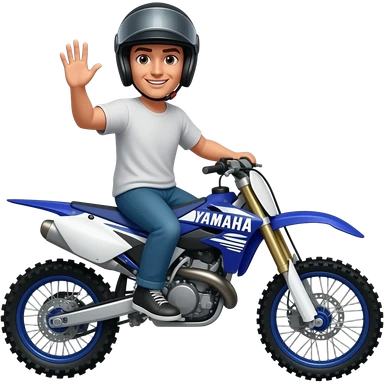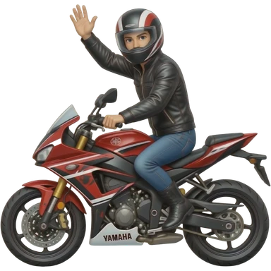 Man on Yaham T7 motorcycle red black and white waving emoji