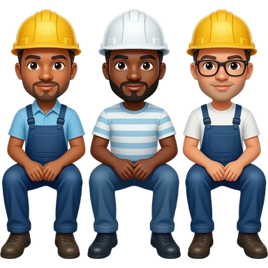 3 black men in hard hats sitting on edge of a metal roof emoji