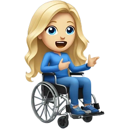 Screaming white girl with blonde hair and blue eyes in wheel chair taking selfies emoji