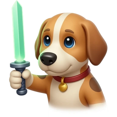 haz un emote de una pata de perro cogiendo una espada láser emoji