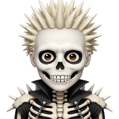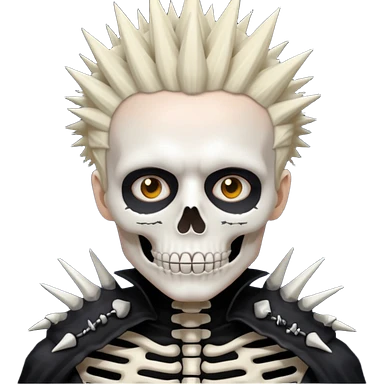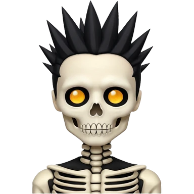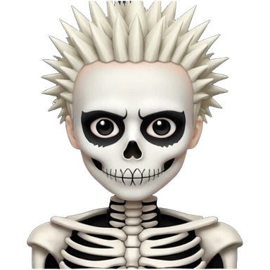 black anime hair guy with skeleton makeup wearing a stussy tshirt with glasses emoji