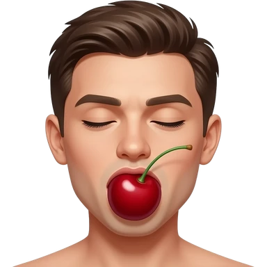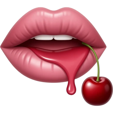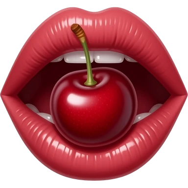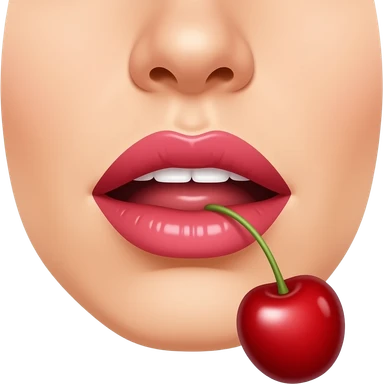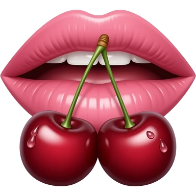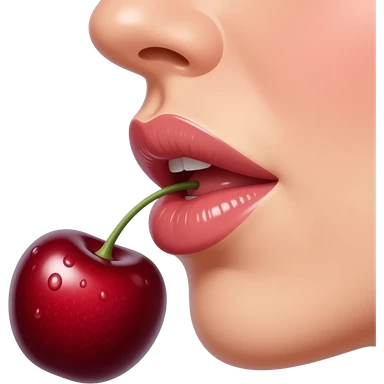side view of female lips closed sucking and biting deeply a big piece of cherry (no face) emoji