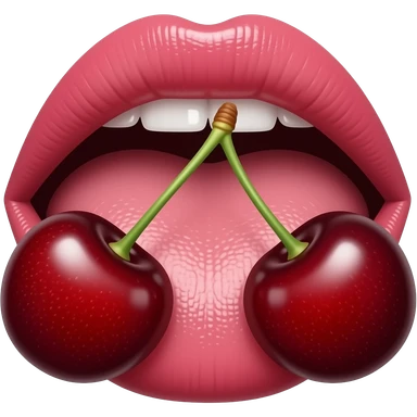 lips and tongue sucking deeply two big pieces of cherry emoji