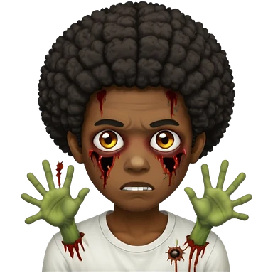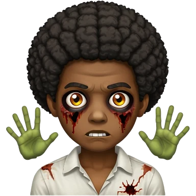 A dark-skinned boy with an afro, zombie eyes, and ears, wearing a white shirt. emoji
