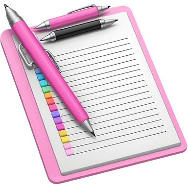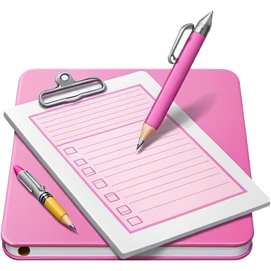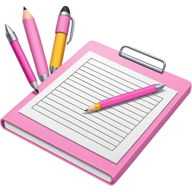 create a pink exam paper with pens and stuff emoji