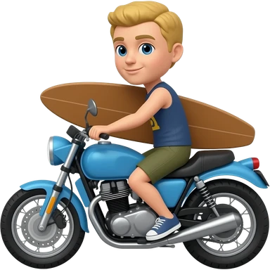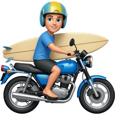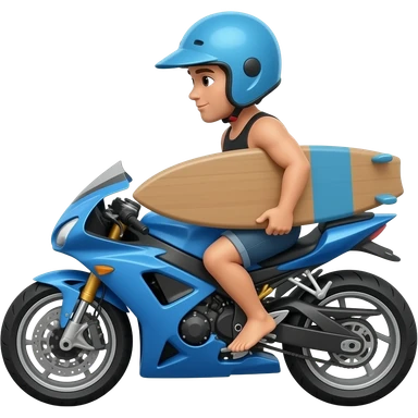 Surfista na moto azul com capacete azul eprancha marrom emoji