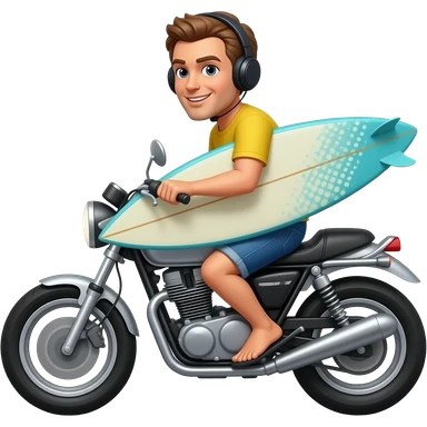 Surfista na moto com prancha emoji
