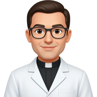Biomedico com óculos com jaleco branco gola de padre emoji