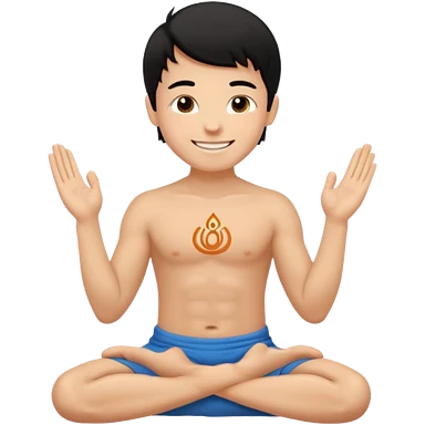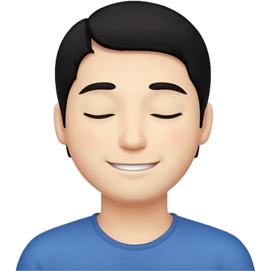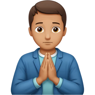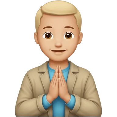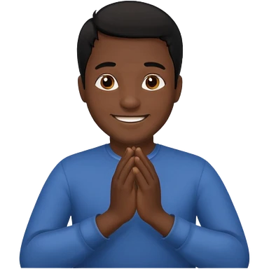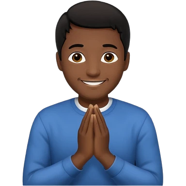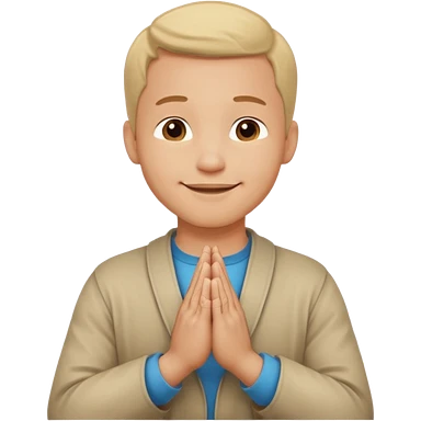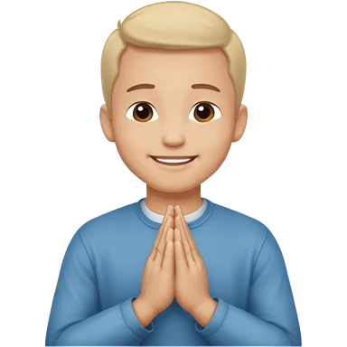 White boy with smiling face black hair doing namaste only upper part emoji